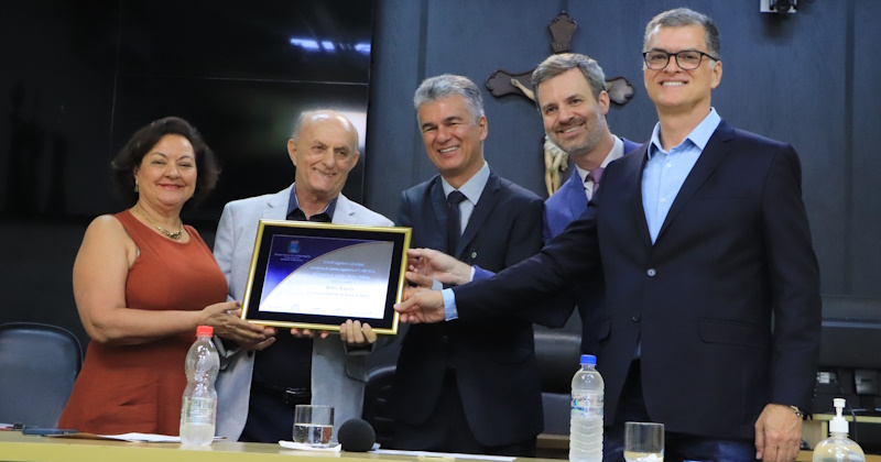 Yashuda, que em 2019 propôs o Diploma de Honra ao Mérito a Pedro Lapena, ressaltou as centenas de empregos diretos e indiretos que a empresa do homenageado gera, contribuindo para o desenvolvimento de Araraquara.