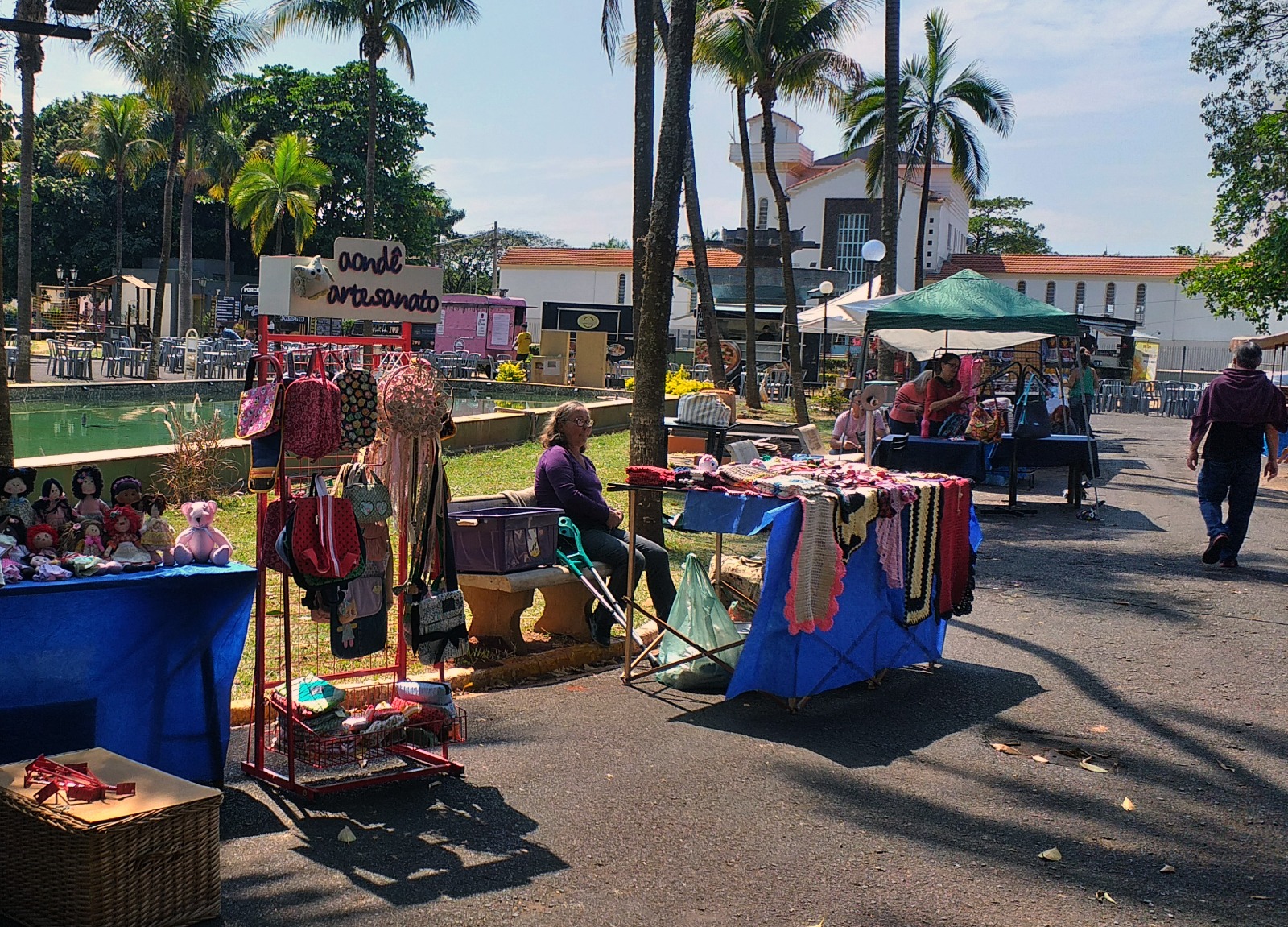 A feira é um espaço de valorização da produção local e oferece peças criativas, originais e feitas à mão – uma vitrine da economia criativa que movimenta a cultura e gera renda para diversos expositores.