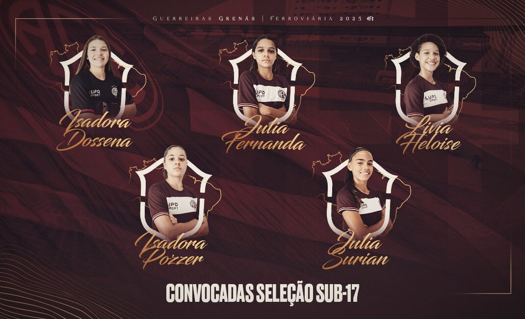As Guerreirinhas Grenás contarão com cinco representantes na Seleção Brasileira Feminina Sub-17. A goleira Isadora Dossena, a lateral-direita Lívia Heloise, as meio-campistas Julia Surian e Julia Fernanda, e a atacante Isadora Pozzer, estão entre as 27 convocadas pela treinadora Rilany Silva para período de treinamentos de 24 de novembro a 2 de dezembro, em Bragança Paulista.