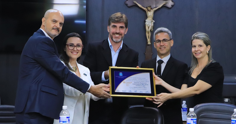 A Câmara Municipal realizou, na noite de sexta-feira (12), a entrega do Diploma de Honra ao Mérito ao Conselho Regional de Enfermagem de São Paulo (Coren-SP). A honraria foi proposta pelos vereadores Dr. Lelo (Republicanos) e Enfermeiro Delmiran (PL). O vereador Marcelinho (Progressistas) esteve presente na solenidade.