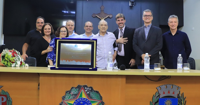 Sérgio Clérice relembrou o vínculo com a cidade, onde costumava passar as férias e conheceu a esposa. Ele agradeceu e disse estar alegre com a oportunidade de receber o Título de Cidadão Araraquarense. “É uma coisa que entrou aqui e vai ficar aqui”, declarou, apontando para o coração.