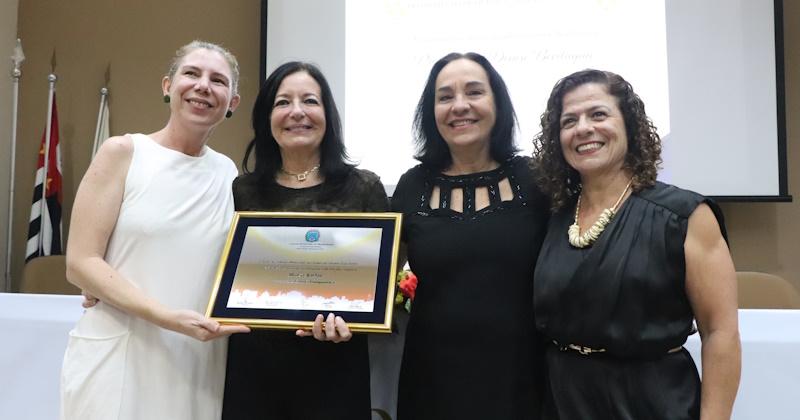 Na noite dessa quarta-feira (15), a Câmara Municipal homenageou a reitora da Universidade Estadual Paulista (Unesp), Maysa Furlan, com o Título de Cidadã Araraquarense. A honraria foi proposta pela vereadora Fabi Virgílio (PT) e entregue em Sessão Solene da Assembleia Legislativa do Estado de São Paulo, realizada no Instituto de Química da Unesp Araraquara (IQ) em comemoração aos seus 65 anos de fundação, por indicação da deputada estadual Márcia Lia (PT).