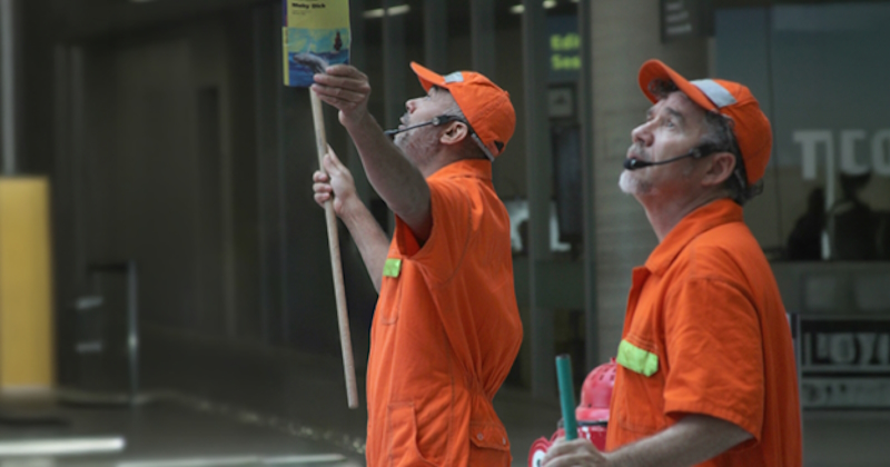 Dois garis empurram uma lixeira repleta de sucatas quando, a partir de uma lembrança, são conduzidos a uma aventura inesperada: recriar, de forma inventiva, o clássico “Moby Dick”. A Cia. Eureka, com seu trabalho em Teatro de Objetos e Formas Animadas, propõe um “reuso poético” de materiais diversos, que ganham novos sentidos simbólicos e metafóricos – tão presentes no universo lúdico das crianças. “R.U.A. – Recontando Uma Aventura”, no sábado (24), às 16 horas, no Garimpo do Sesc. Grátis.