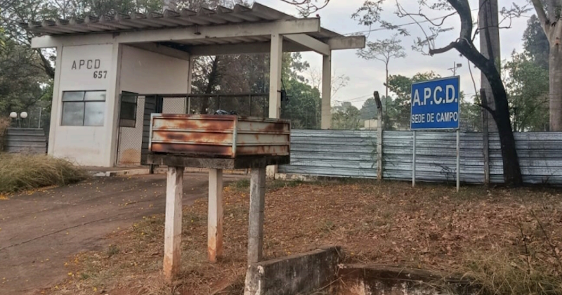 Clube fechado e em aparente abandono, contando apenas com a presença de um caseiro responsável pela guarda do imóvel.