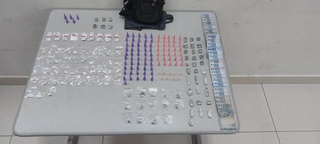 Três indivíduos foram presos no início da tarde desta terça-feira (28), acusados de envolvimento com o tráfico de drogas. Com o trio foram apreendidas várias porções de cocaína e maconha prontas para a venda, além de uma quantia em dinheiro trocado.